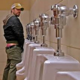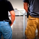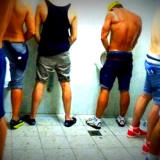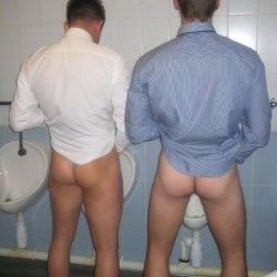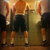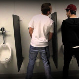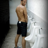 Hay un momento en el que los dos hombres que se masturban delante de los urinarios son consciente de su presencia. Sin embargo consciente de la buena predisposición del recién llegado, ni se cohíben, ni interrumpen la tarea en la que están sumidos. Uno de ellos, el más joven, hace un gesto con la mano e invita al cuarentón a unirse a ellos.