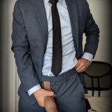 En respuesta a la contestación del hombre del mono, el improvisado trío prosiguen con lo que estaban haciendo, sin ningún pudor, como si les diera más morbo aún el ser observados por un desconocido. La puerta se vuelve a abrir, esta vez quien entra es un hombre de unos treinta y tantos años, con pinta de pijo repelente: pelo engominado, rostro bien afeitado, viste traje de oficina y lleva un maletín en la mano. Cuando ve al muchacho agachando y llevándose a la boca las dos pollas que tiene delante, su primera reacción es huir pero el obrero voyeur lo detiene violentamente. Antes de que pueda gritar, una de las rudas manos del agresor tapa la boca del ejecutivo, mientras con la otra le mete mano bruscamente al paquete.