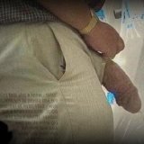 El guardia se desabrocha el estrecho pantalón y deja a la vista una frondosa pelambrera púbica, a continuación se baja unos bóxer blancos y saca un enorme vergajo que a pesar de estar morcillón, marca muy, pero que muy buenas maneras.
