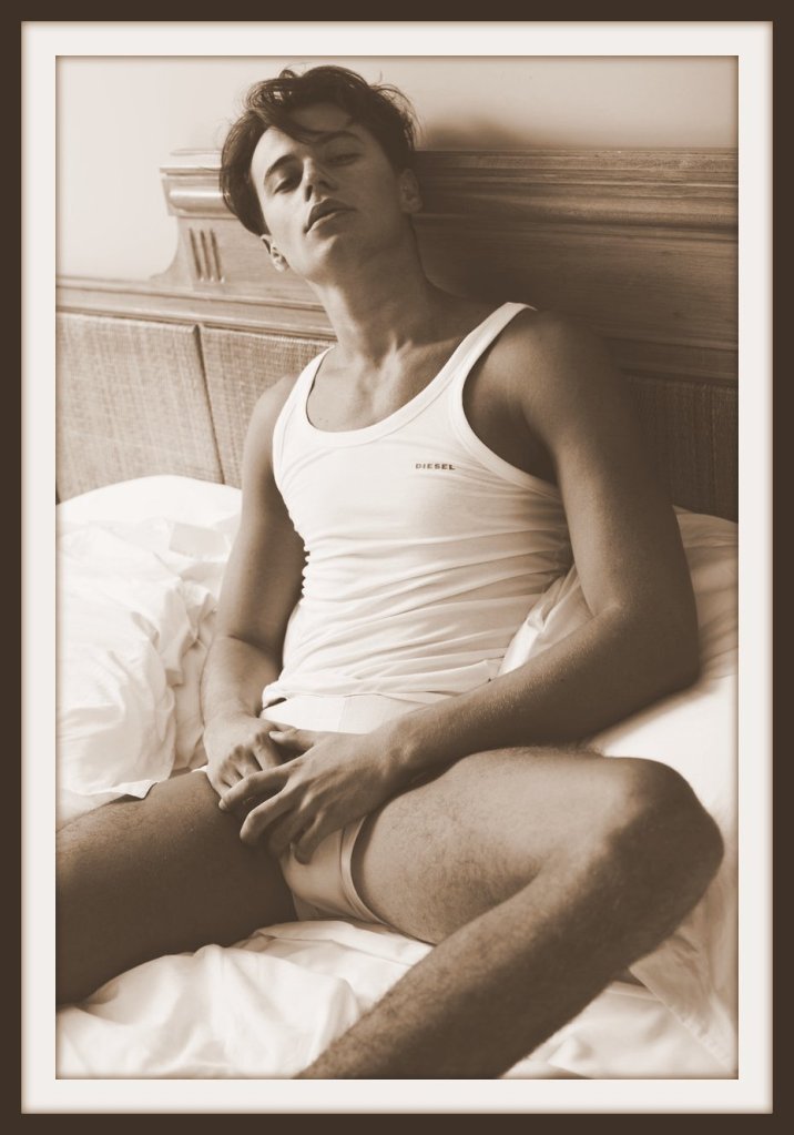 »El primero en retirarse fue Fede, que a indicación de Blas se quitó la camiseta con cierto cachondeito, pues simuló hacer el baile de un stripper, a la vez que tarareaba la musiquilla esa de la Pantera Rosa. Me llamó la atención la cantidad de músculos que tenía. Porque vestido parece que está gordo y que va… ¡Está taco de fuerte el tío!