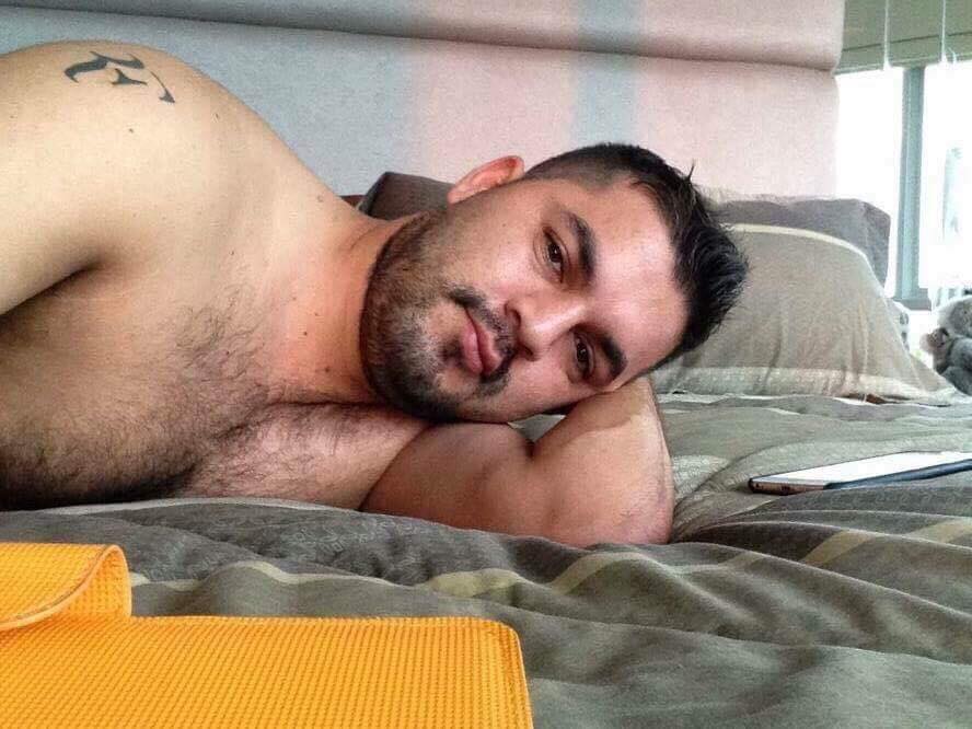 Mientras me meneo el cipote, una mano recorre una de mis tetillas y aprieto fuertemente el pezón. Me paso los dedos por los vellos de mi pecho y, a continuación, acaricio mi tripa delicadamente, creyéndome por un momento que es él quien lo hace.