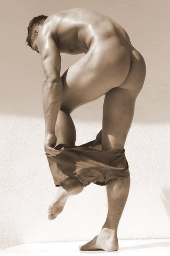 Como consecuencia del leve roce de sus dedos, sus oscuros pezones se hinchan levemente y sus tetillas se ponen tiesas como una estaca. Si mi timidez no fuera tan intensa y mis prejuicios sociales no atenazaran tanto mis impulsos primarios, haría realidad mi deseo y pasaría los dedos por su hermoso pecho. Pero como no es así, me limito a tragar saliva, eso sí, sin apartar la mirada de él.