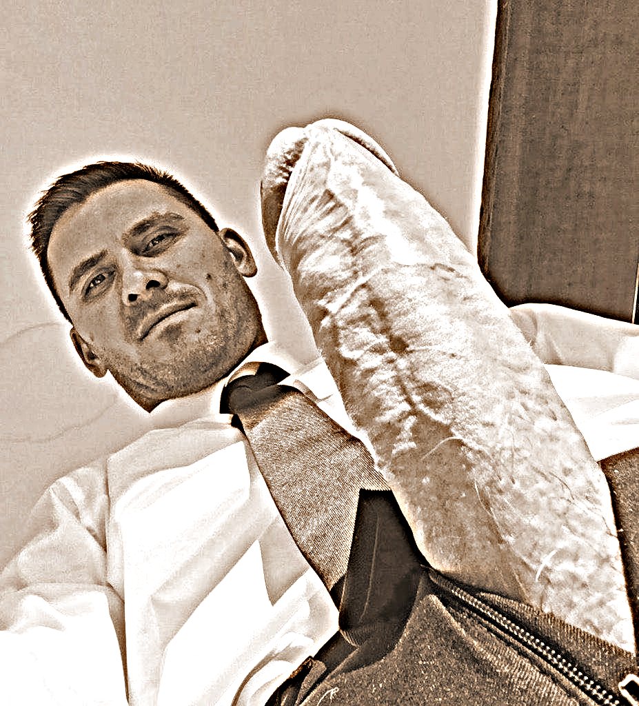El empresario, con una total dejadez, se sentó en la cama, se abrió la bragueta y sacó su gruesa polla al exterior.